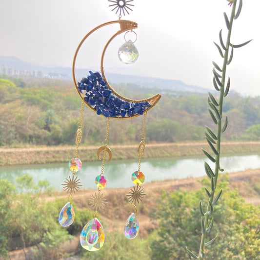 Moon Crescent Crystal Suncatcher (Lapis Lazuli)