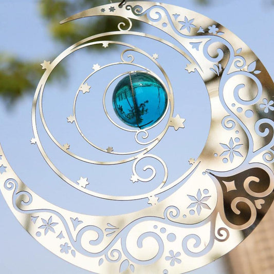 Rotating Silver Moon with Crystal Glass Ball Hanging Decor